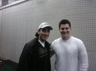 Mr Lotito also received personal instruction in pitching mechanics from Cardinal Pitcher Brad Thompson (pictured on the right in the Cardinals underground complex). Thompson, who has come back from an injury, related how he wished he had spent more time conditioning and working with a sports performance trainer when he was younger. He explained his workout regimen and specifically his injury prevention exercises he now performs regularly in order to extend the life of his pitching arm. He recommended any athlete who has pain should find a sports performance trainer and or physical therapist he or she trusts and stick with them long term to fully resolve any symptoms.
